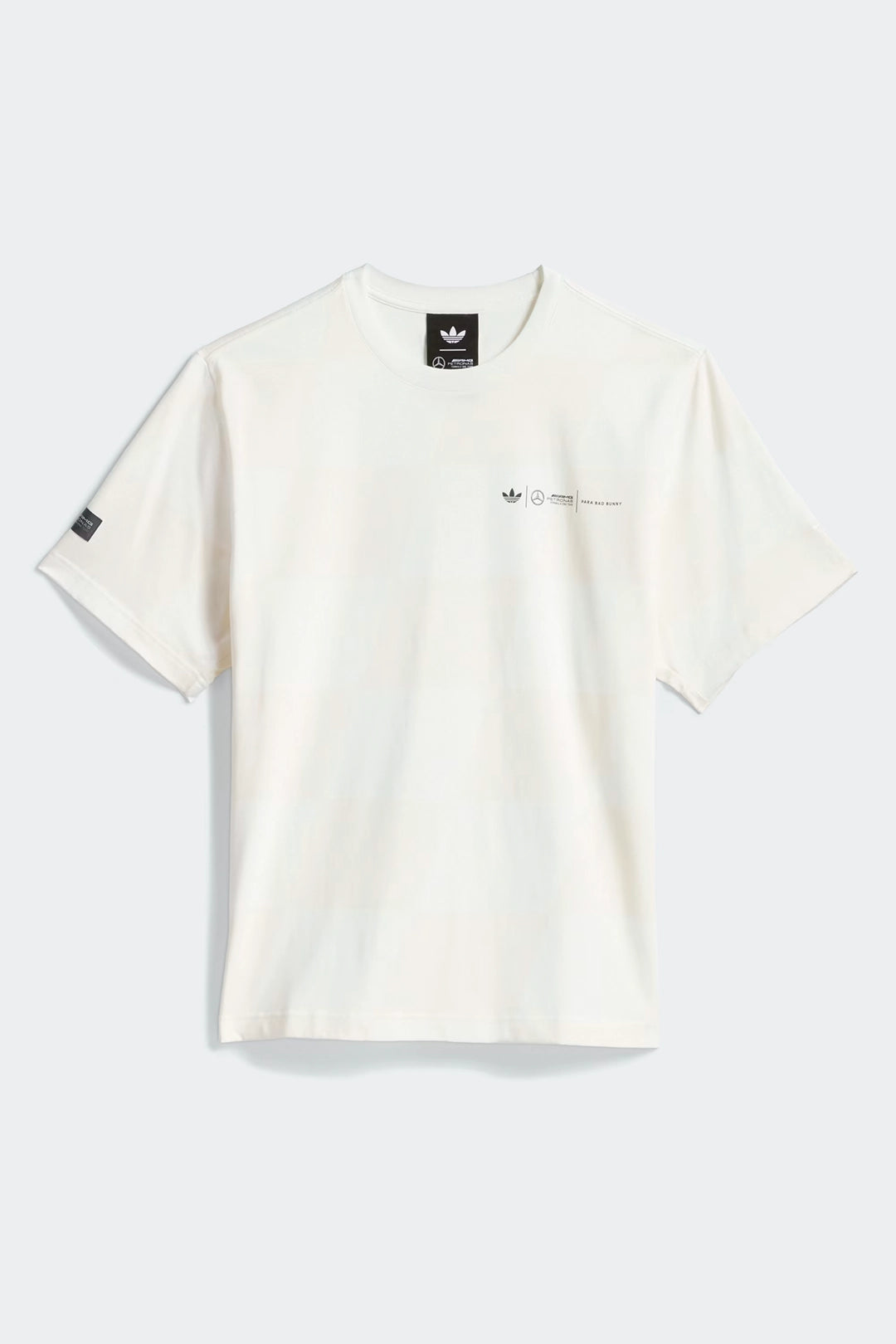 Su diseño presenta gráficos exclusivos inspirados en la Fórmula 1, el logo de Mercedes-AMG Petronas, el icónico conejo de Bad Bunny y el logotipo de adidas Originals, todos impresos con acabados de alta calidad. Perfecta para quienes buscan una pieza que combine rendimiento, estilo y exclusividad, la camiseta adidas x Bad Bunny x Mercedes es una prenda imprescindible para fanáticos del artista, del automovilismo y del streetwear premium en Colombia.