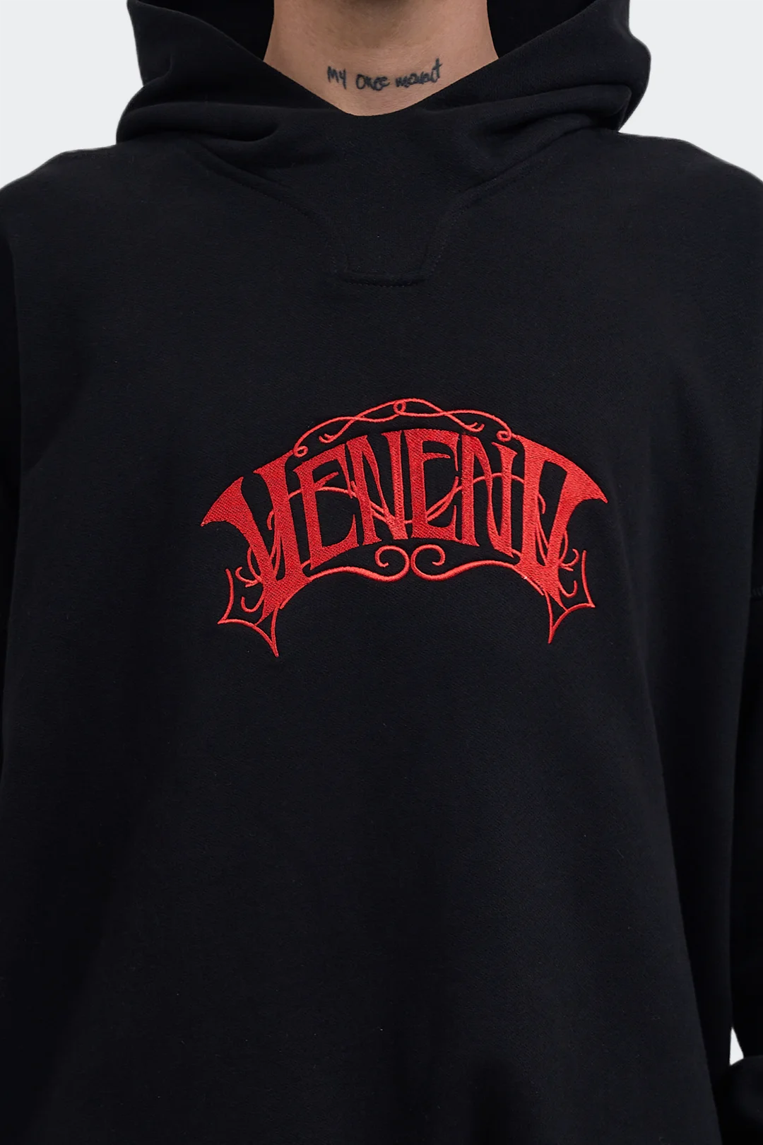 Conoce ahora este buzo Vnno Gotic elaborado con algodón 100% que cuenta con un logo de veneno bordado en el frente, cuello redondo y un cuello redondo que nos muestra todo el estilo de veneno en una sola pieza. Cada prenda de Veneno está confeccionada con manos colombianas de madres cabeza de familia, una marca 100% colombiana.